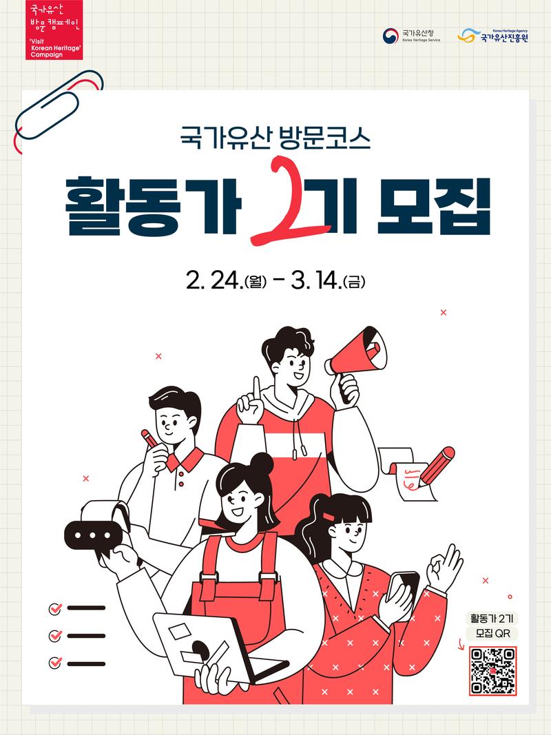 국가유산 방문자 여권과 함께 소중한 우리 국가유산을 방문하여 아름다움을 직접 느끼고 가치를 이어나갈 수 있도록 지원하는 「국가유산 방문코스」 활동가 2기를 모집합니다.