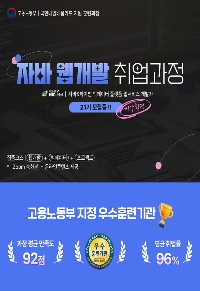 훈련과정 : 자바 & 파이썬 빅데이터 플랫폼 자바 웹 개발자 양성과정