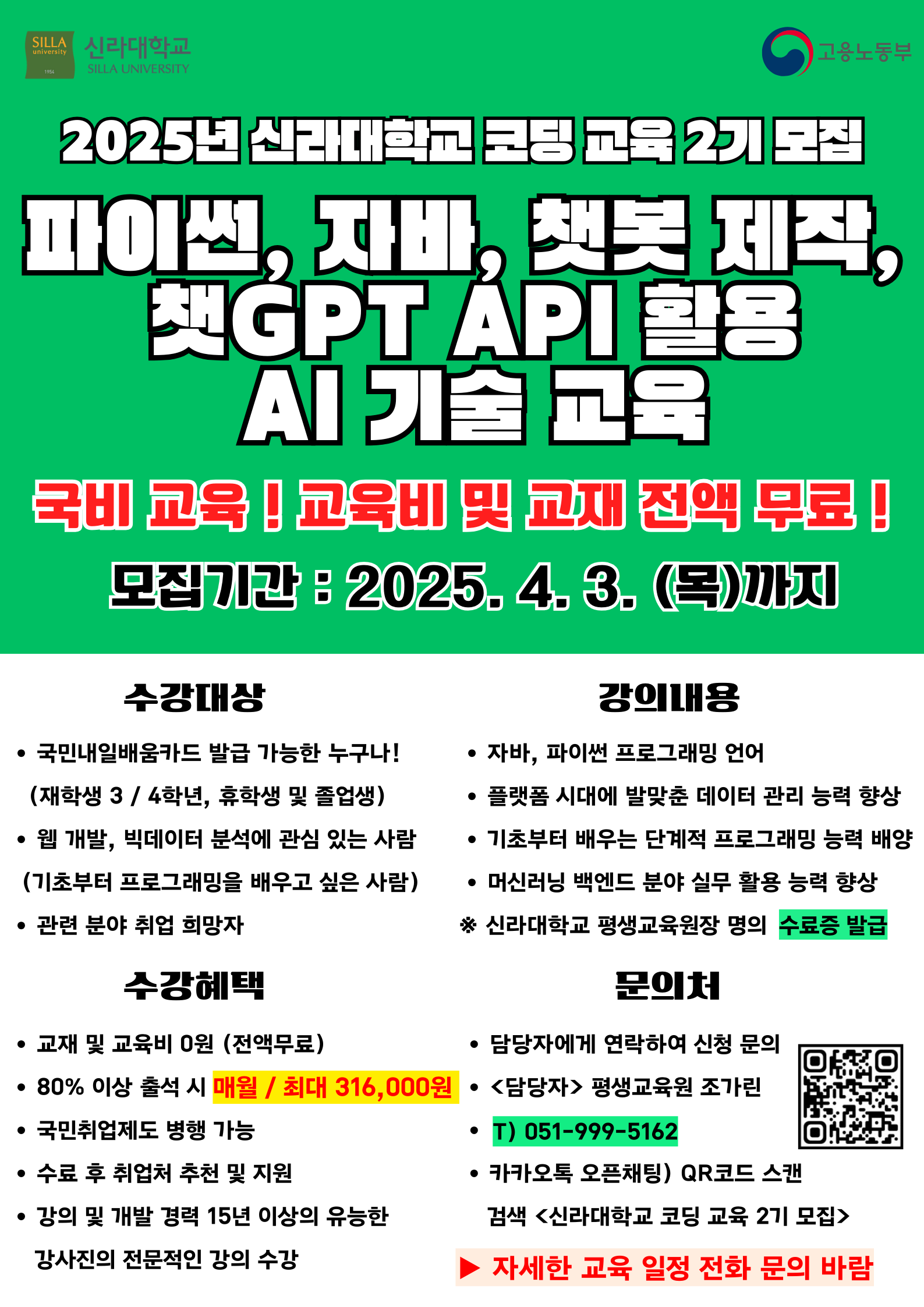 - 교재 및 교육비 0원 (전액 무료!!!!)