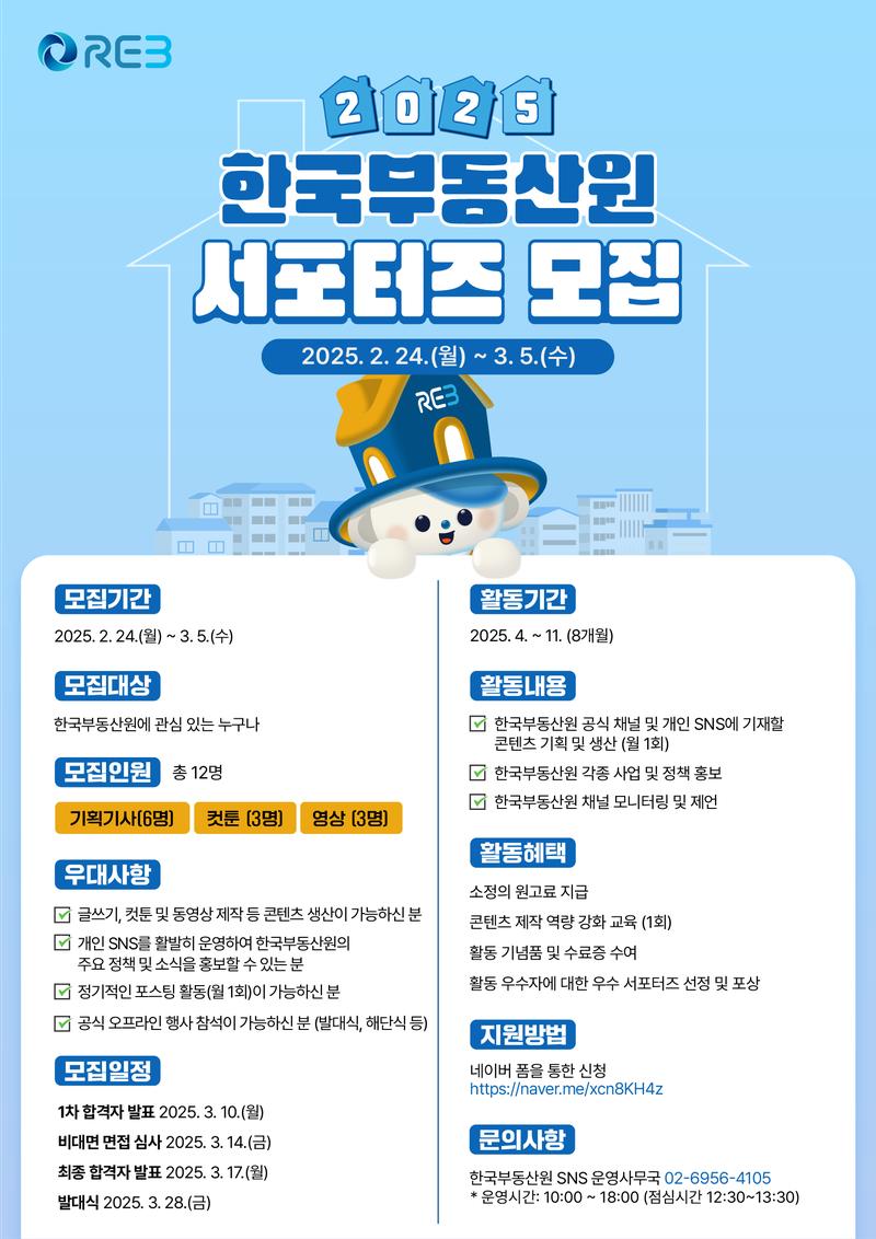 한국부동산원 공식 채널 및 개인 SNS에 기재할 콘텐츠 기획 및 생산 (월 1회)