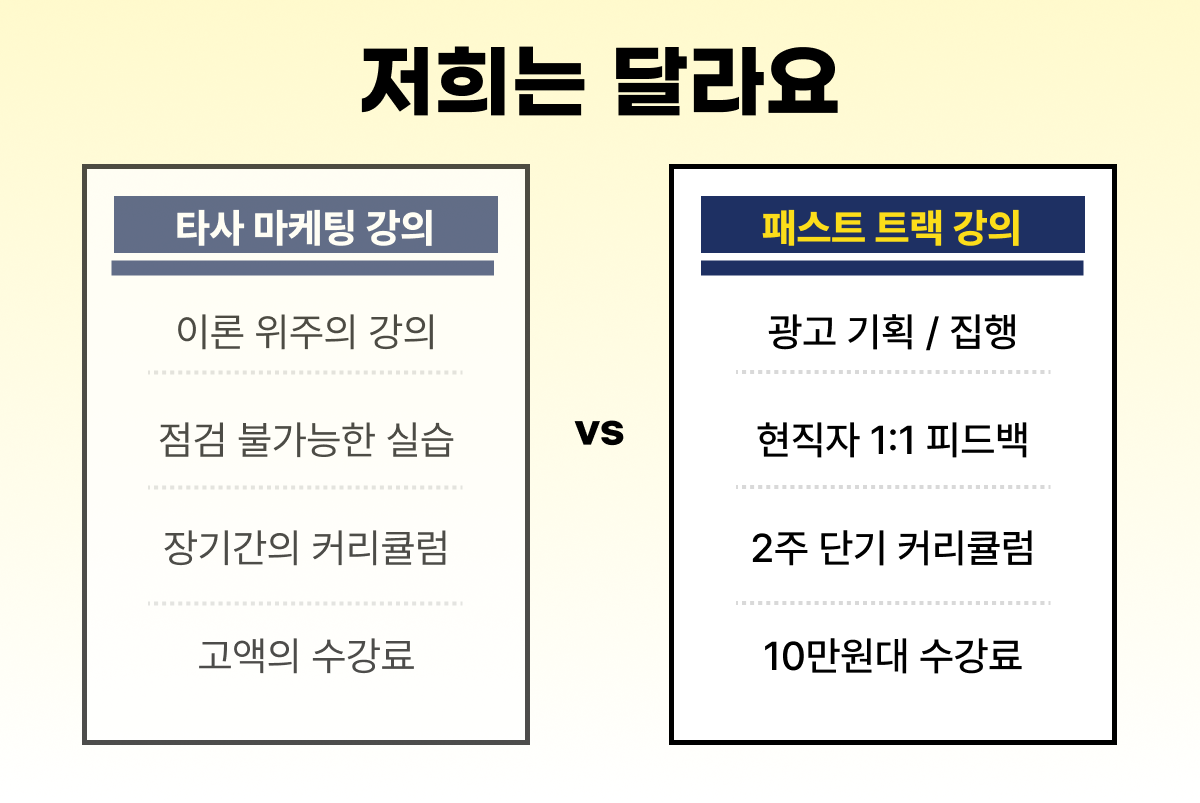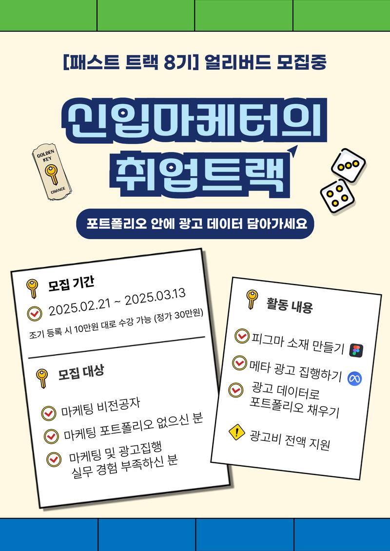 그래서 준비된 실전형 프로그램 패스트 트랙 8기 광고 콘텐츠 기획부터 실제 광고 운영까지 경험할 수 있어요.