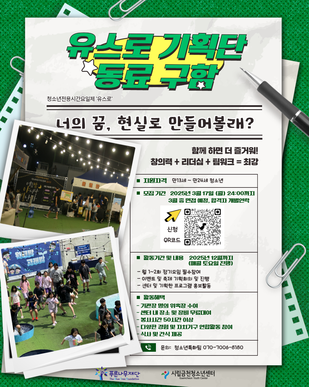 - 활동문의: 시립금천청소년센터 (070-7006-8180)