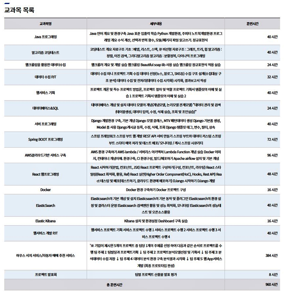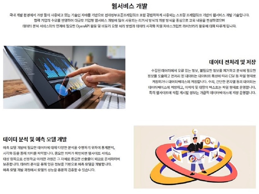 - 웹 프론트엔드, 백엔드 프로그램 언어와 기술 습득을 통한 전문 개발자 양성