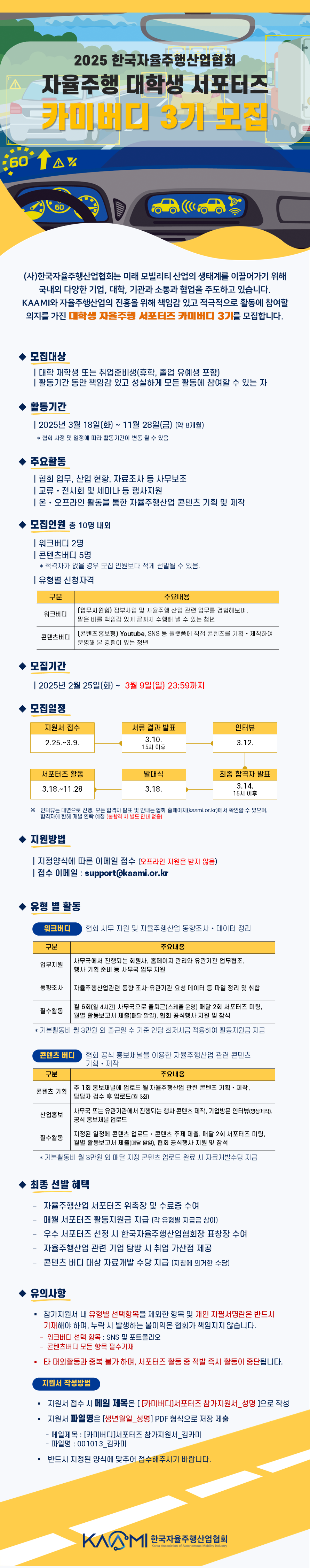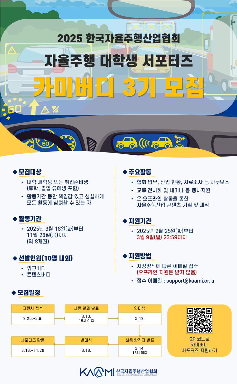 2025 KAAMI 대학생 자율주행 서포터즈 '카미버디 3기' 모집