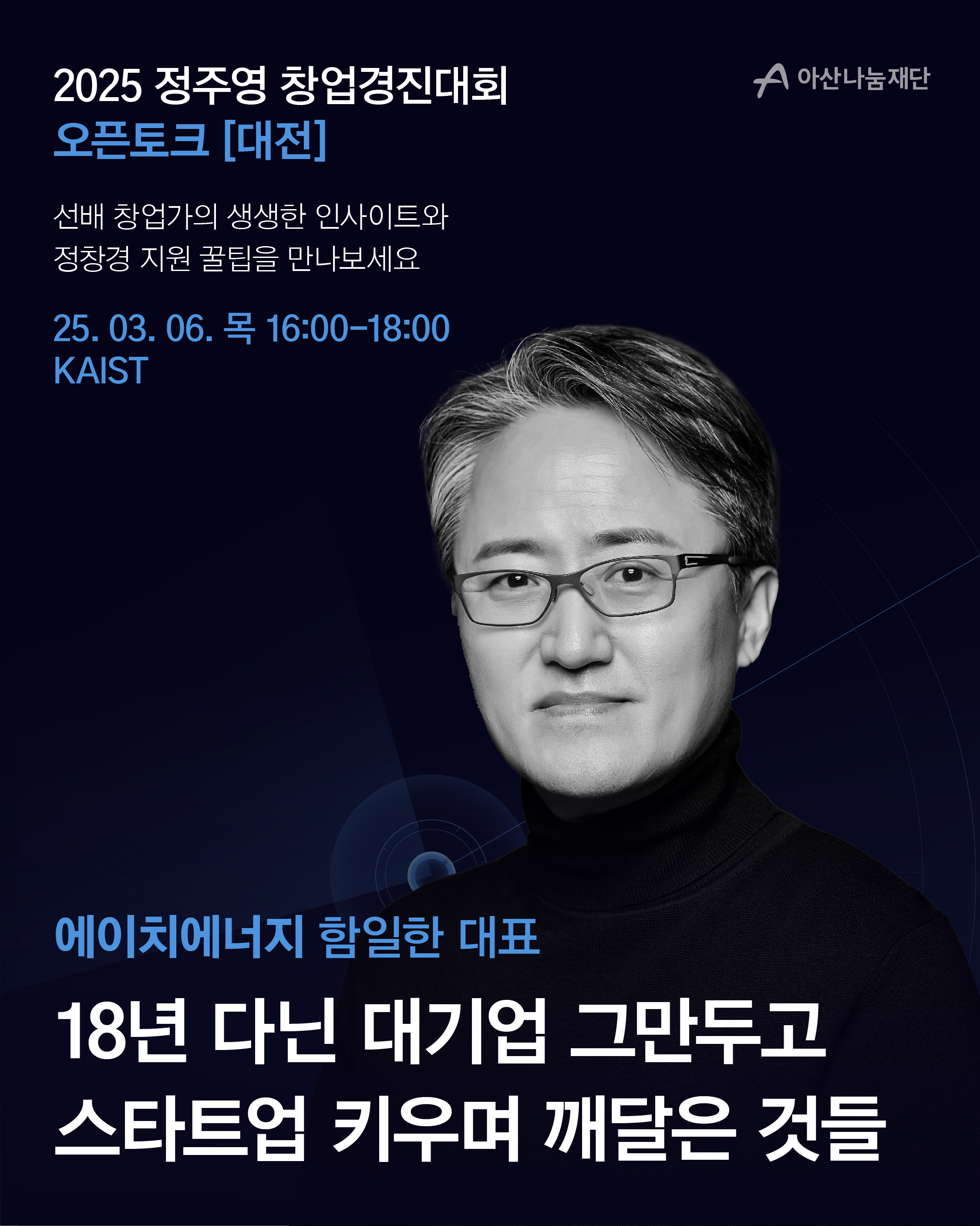 2025 정주영 창업경진대회 오픈토크 행사 소식을 전해 드립니다.