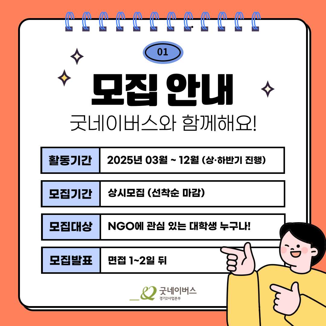 [상시모집] 굿네이버스 경기2사업본부에서 대학생자원봉사동아리 늘해랑 4기를 모집합니다!