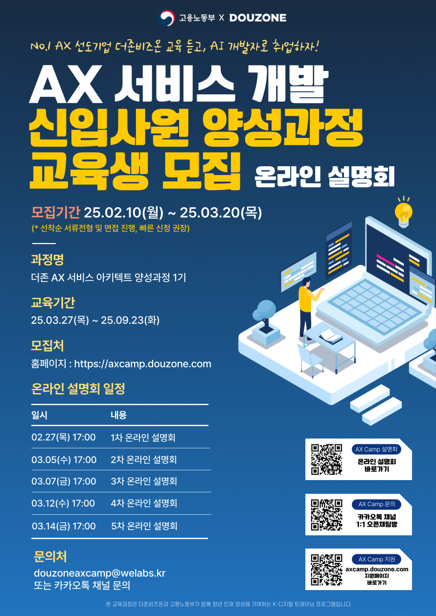 홈페이지(https://axcamp.douzone.com/)를 통해 접수하실 수 있습니다.