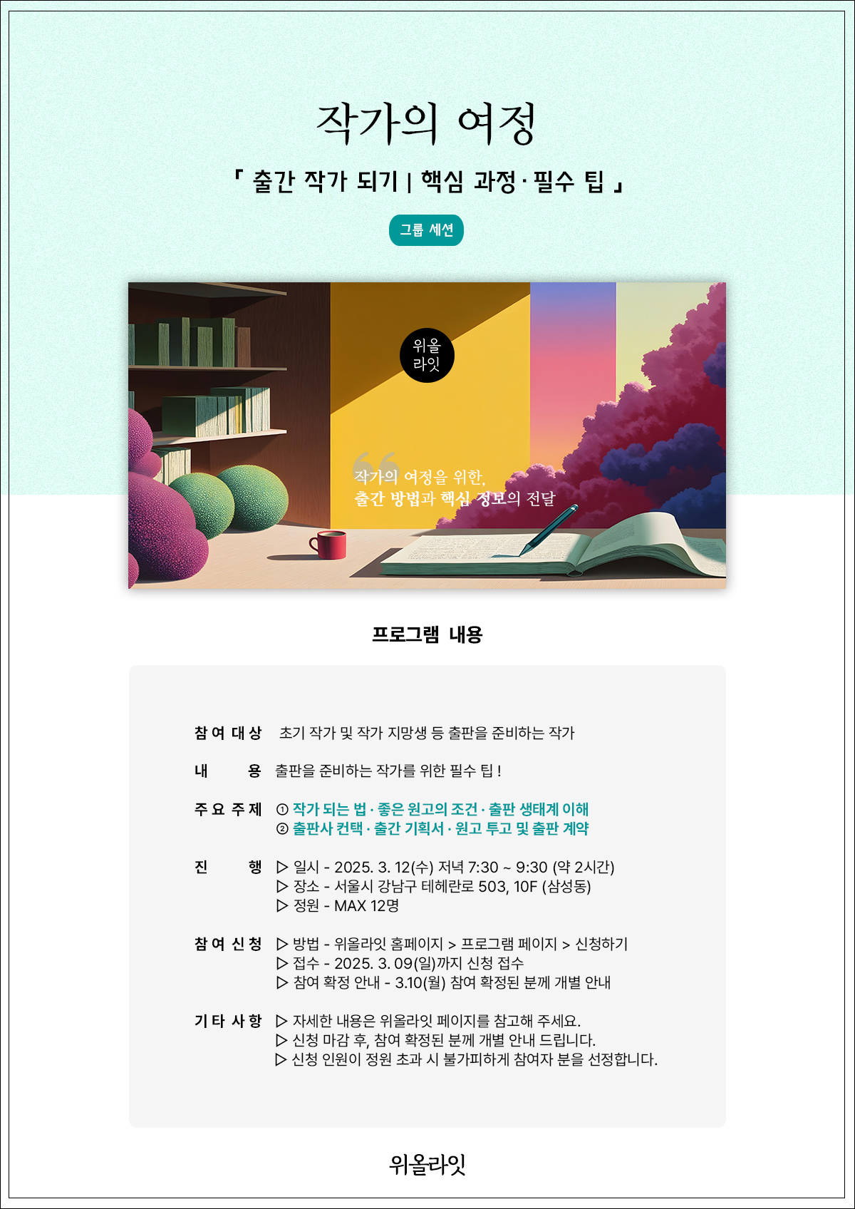 👥 참여 대상 및 인원 : 초기 작가 및 지망생(최대 12명)