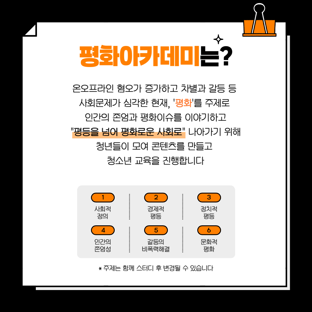 ▷활동 내용 : 평화교육 콘텐츠 제작, 찾아가는 청소년 교육