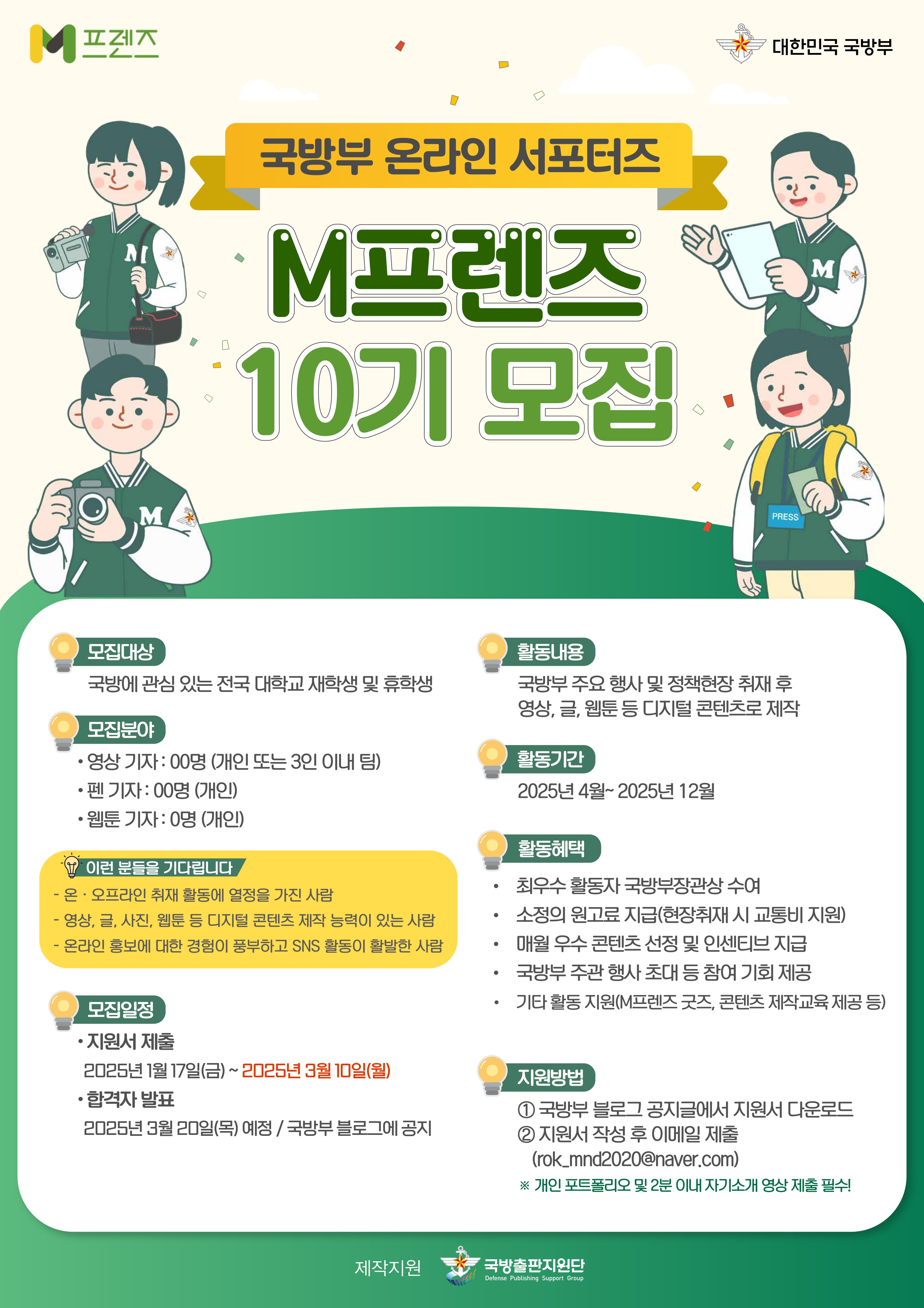 📢 2025년 국방부 온라인 서포터즈 M프렌즈 10기 모집!