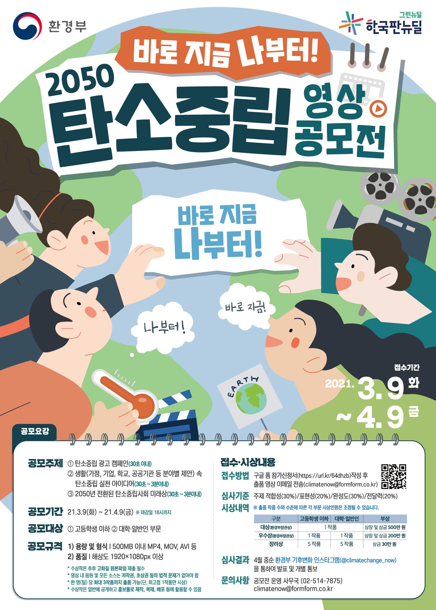 '탄소중립'에 동참하고 싶은 대한민국 거주자라면 누구나 참여할 수 있는 [2050 탄소중립 영상 공모전]