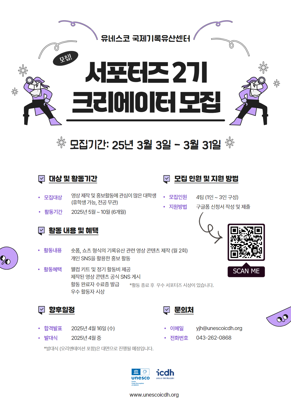 유네스코 국제기록유산센터에서 크리에이터 서포터즈 2기를 모집합니다!