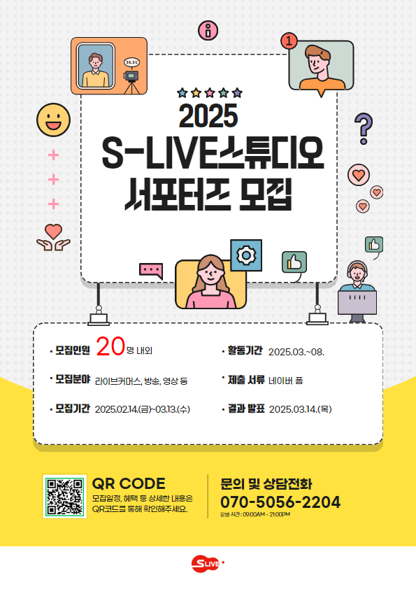 📢 문의 │ S-LIVE스튜디오 운영사무국 070-5056-2204