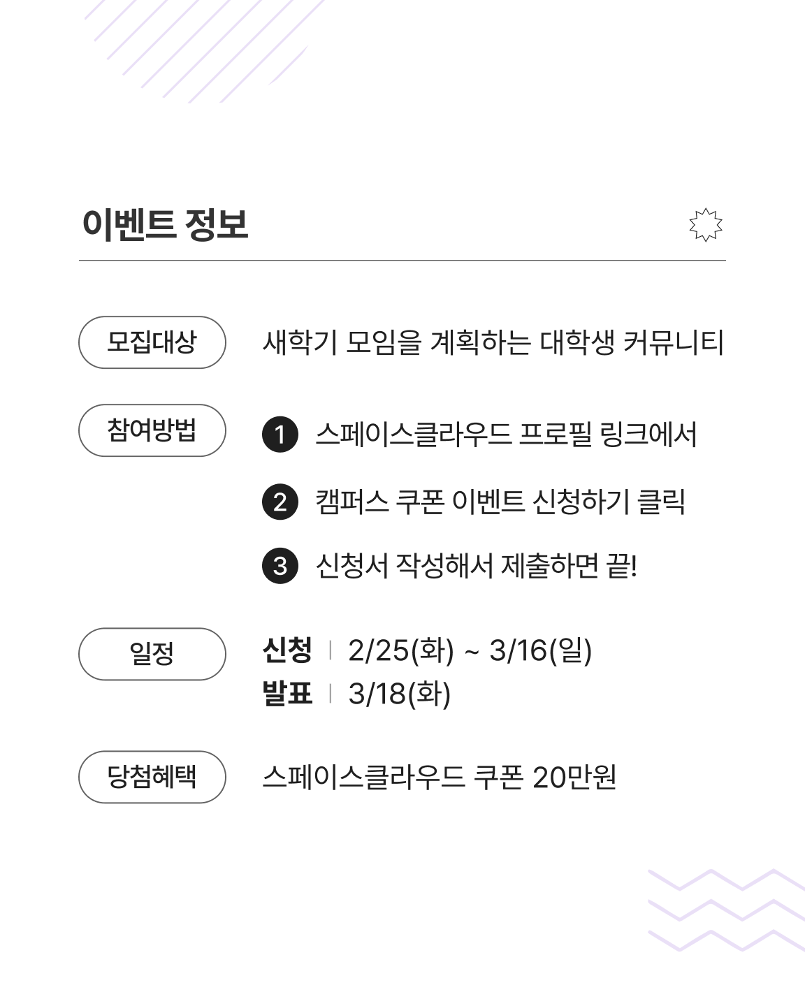 새학기, 새로운 시작을 위해 여러분의 캠퍼스 라이프를 더 특별하게 만들어줄 이벤트를 준비했어요. 💥