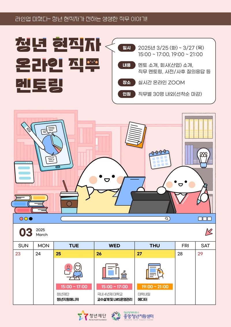 - 3/25(화) 15:00~17:00 / 청년재단(청년지원매니저)