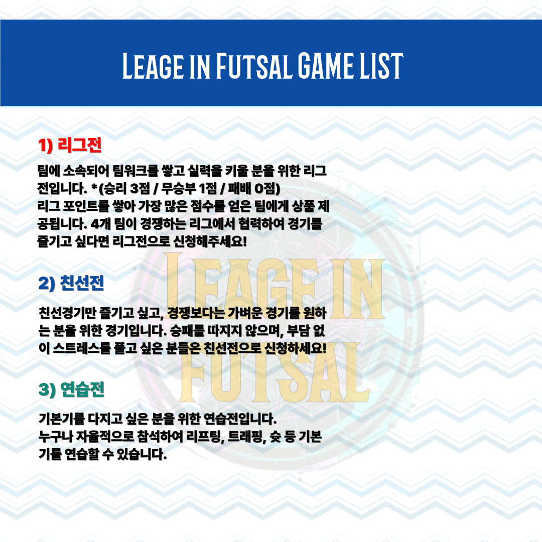 리그 인 풋살에 오신 것을 환영합니다.
