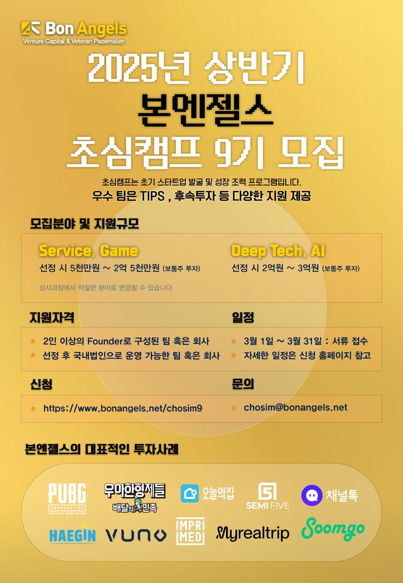 [본엔젤스] 2025년 상반기 초심캠프 9기 모집