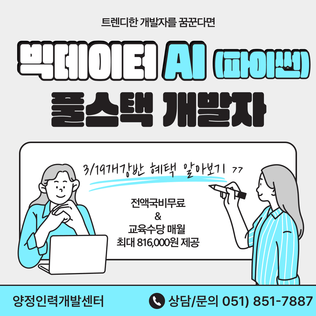 빅데이터 분석&AI(파이썬) 활용한 풀스택 개발자 신입양성교육!