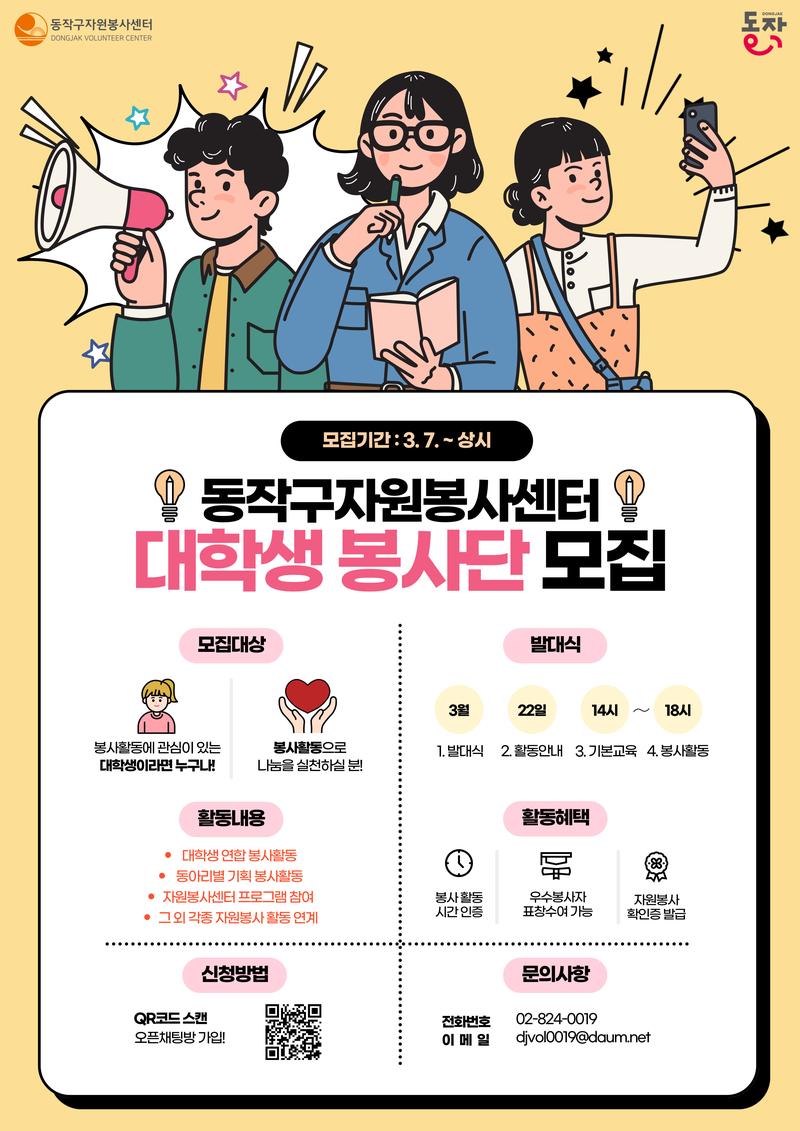 [동작구자원봉사센터] 동작구 대학생 봉사단 2기 모집 (~ 상시모집)