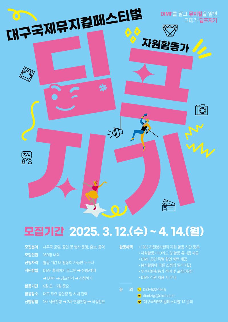 성공적인 개최와 원활한 진행을 위해 DIMF와 함께 활동할 자원활동가 ‘딤프지기’를 모집합니다.