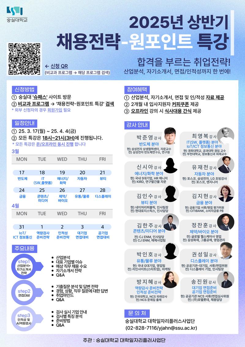 숭실대학교 대학일자리플러스사업단 (02-828-7116/yjahn@ssu.ac.kr)