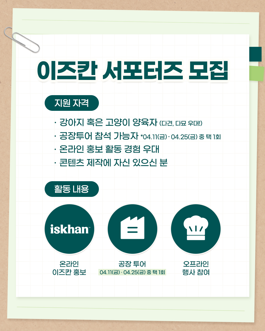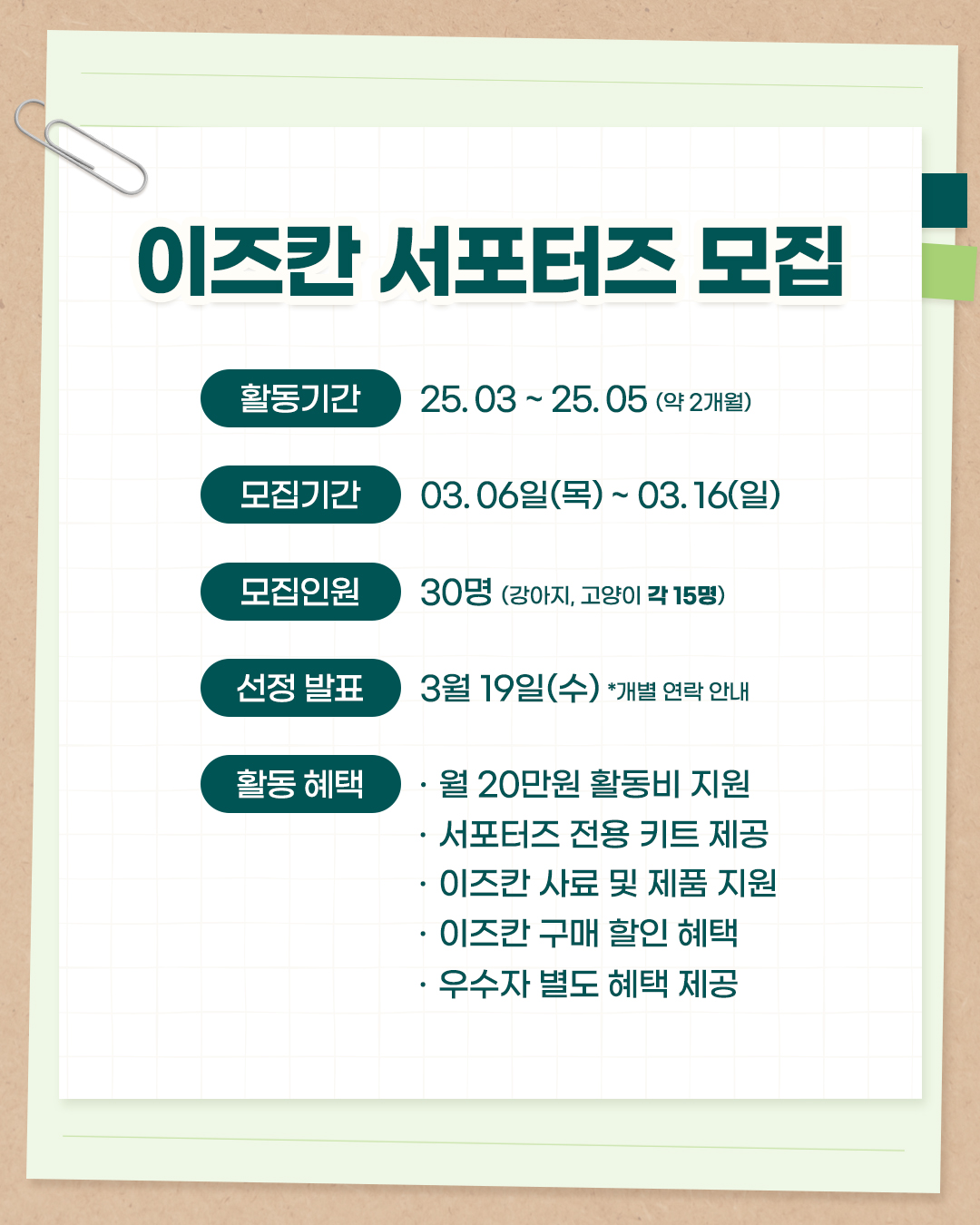 #이즈칸 에서 ‘생생 서포터즈'를 모집합니다🐕🐈