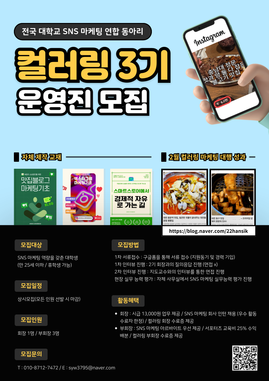 전국 대학 연합 SNS 마케팅 동아리 “컬러링” 3기 운영진 모집