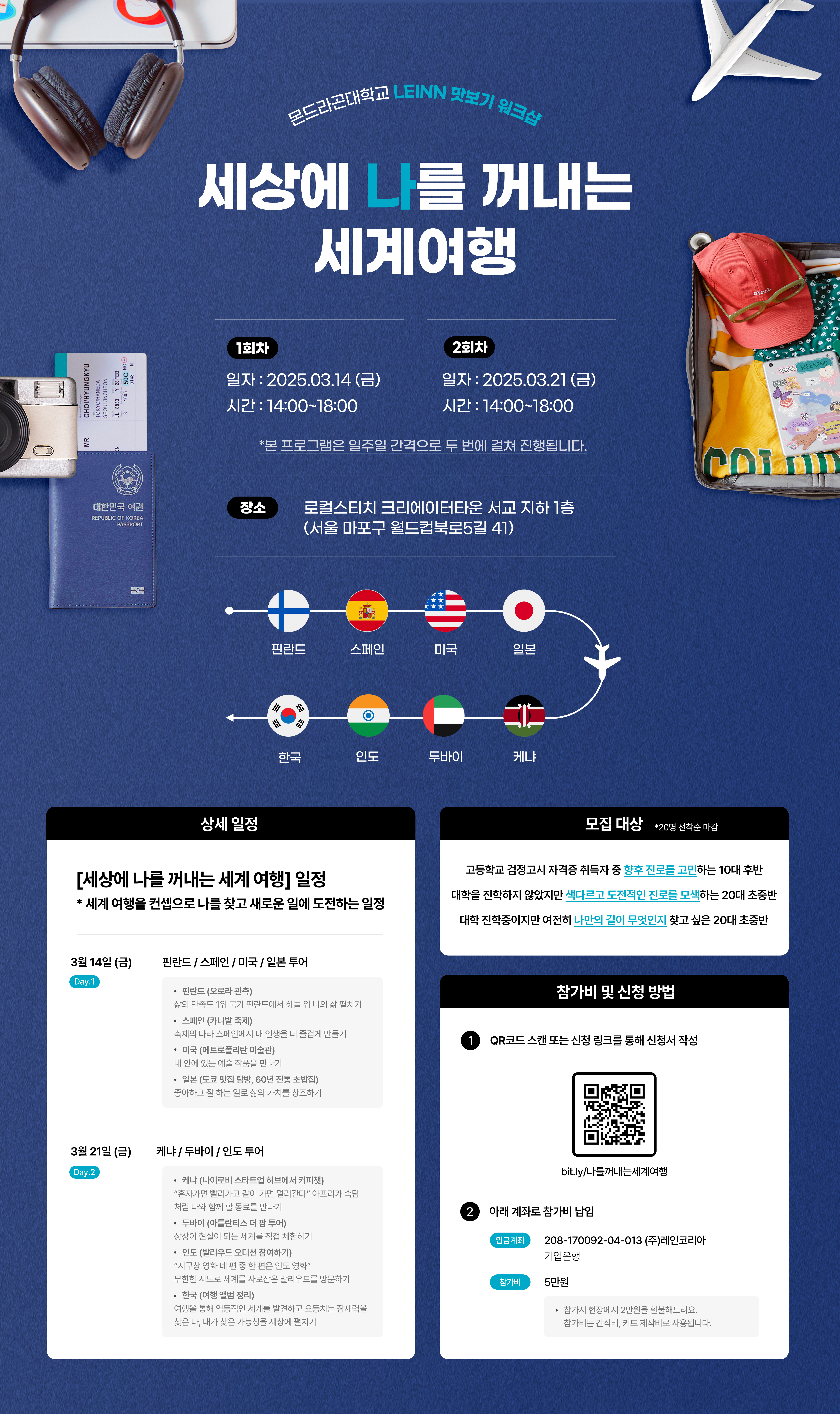 1.QR코드 또는 링크(bit.ly/나를 꺼내는 세계여행) 통해 신청서 작성
