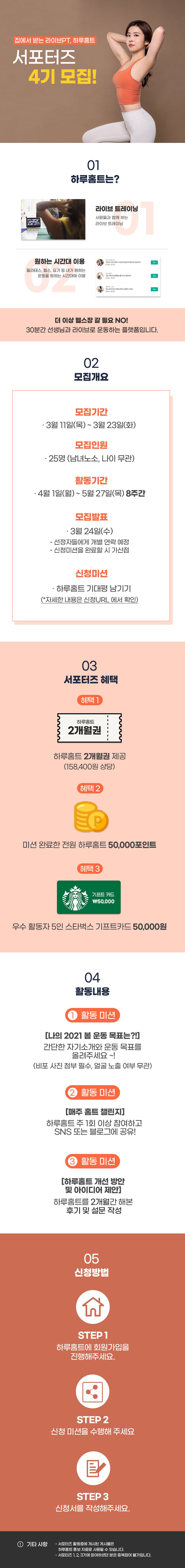 ★2021년 봄에 꾸준한 운동습관 만들 하루홈트 서포터즈 4기 모집★