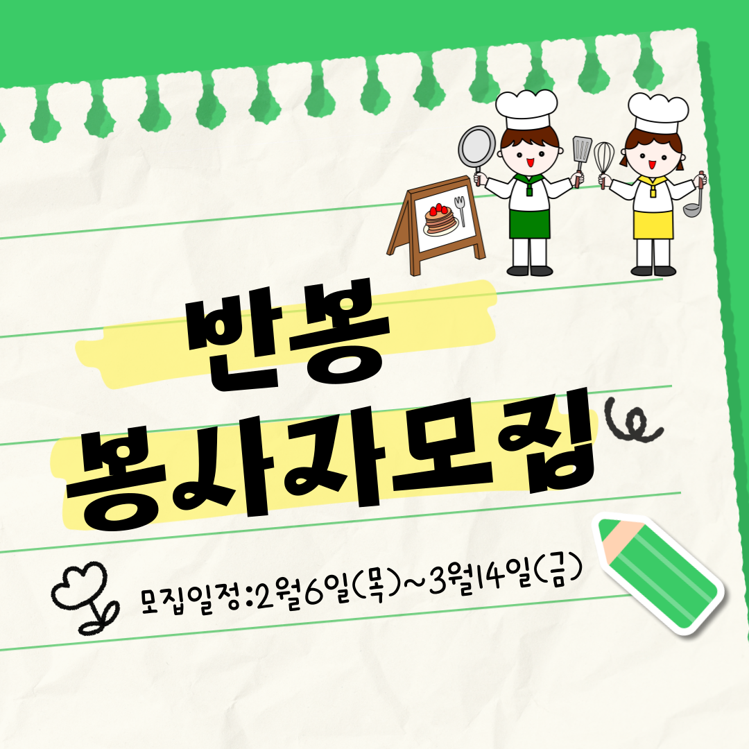 독거노인 반찬 봉사 동아리 [푸른사람들 반봉팀]에서 2025 신입 활동가를 모집합니다.