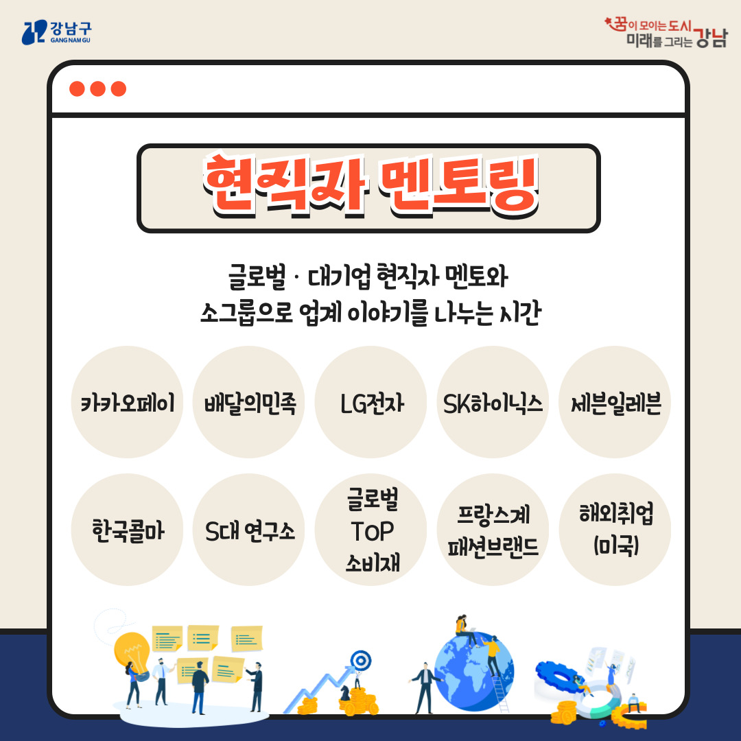 뿐만 아니라 글로벌·대기업 현직자 멘토와 소수정예로 함께 업계 이야기 나누는 시간까지!