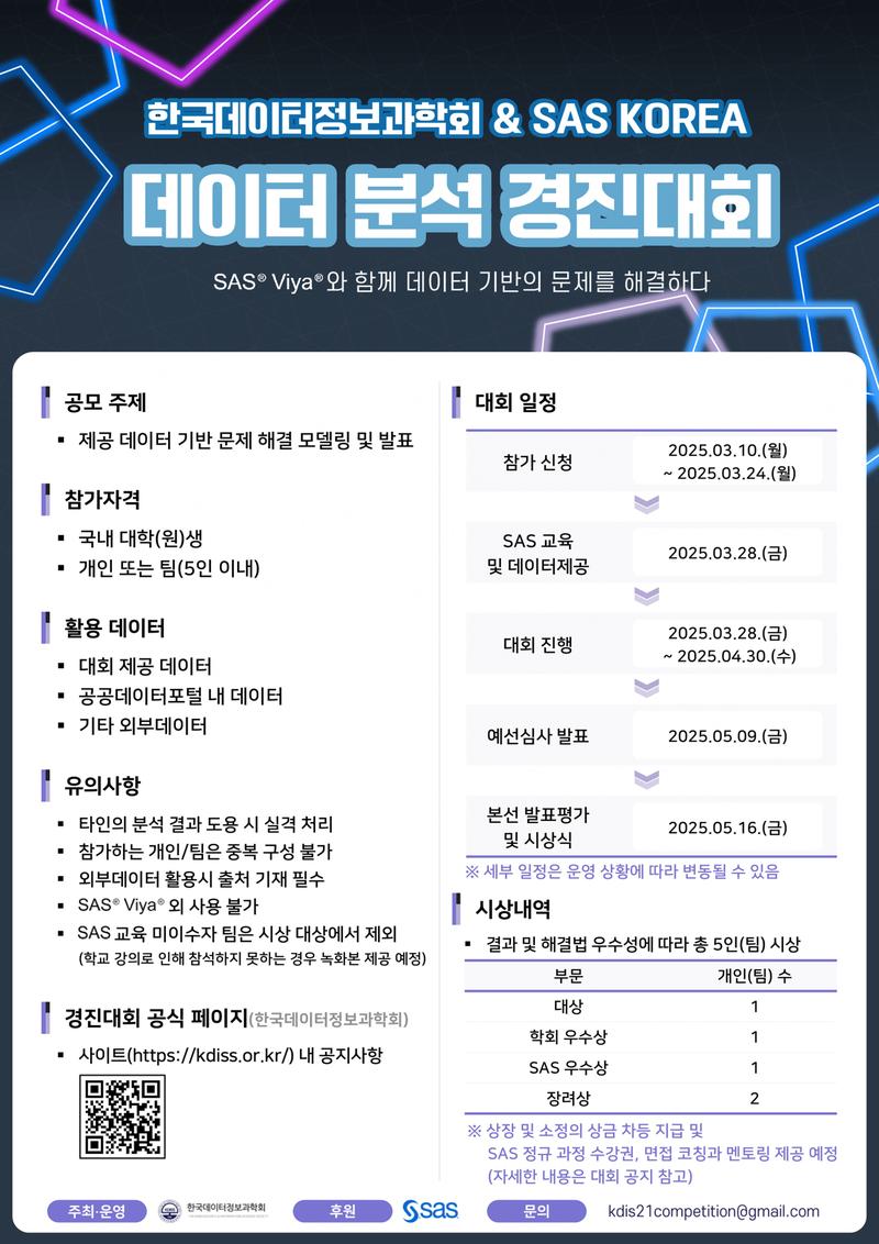- 이메일: 한국데이터정보과학회_경진대회(kdis21competition@gmail.com)