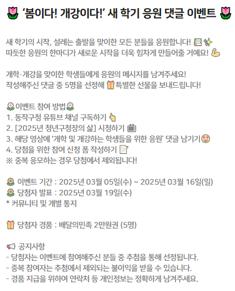 ๐ป ์ด๋ฒคํธ ๊ธฐ๊ฐ : 2025๋ 03์ 05์ผ(์) ~ 2025๋ 03์ 16์ผ(์ผ)