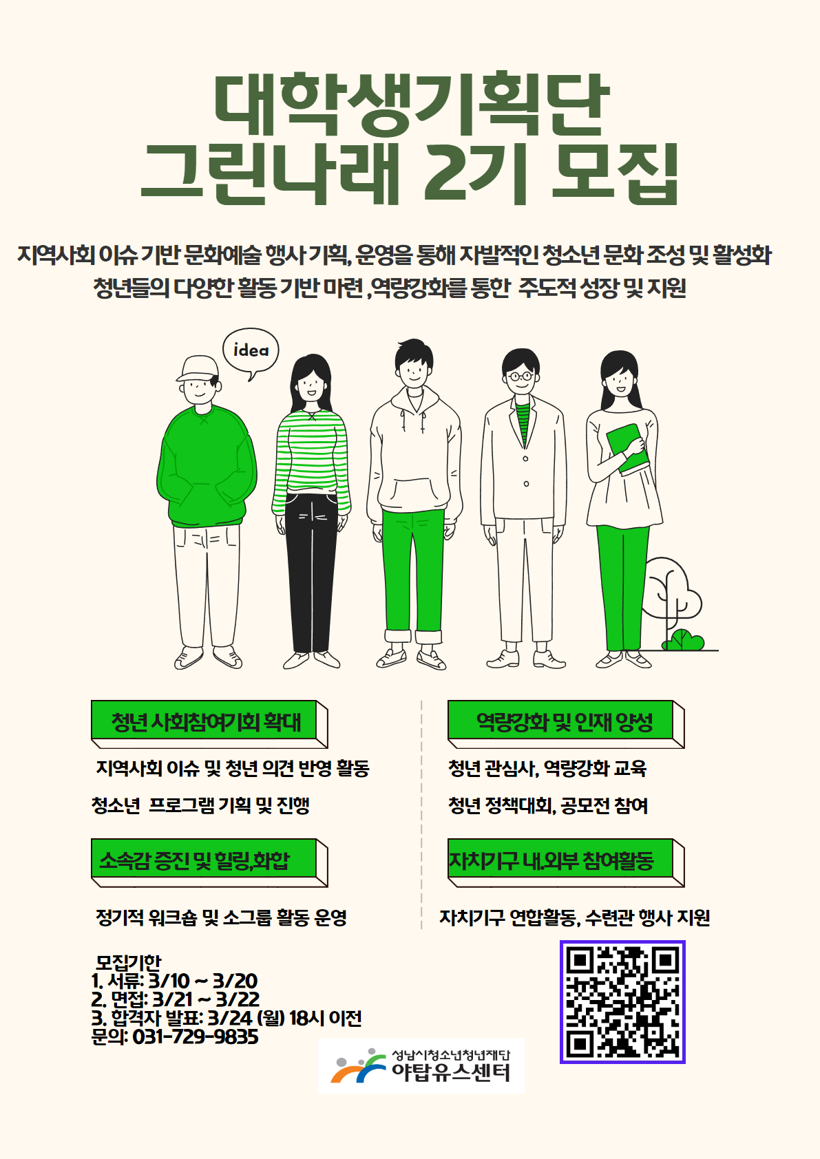 분당야탑유스센터에서 대학생 기획단 2기 신규 단원을 모집합니다.