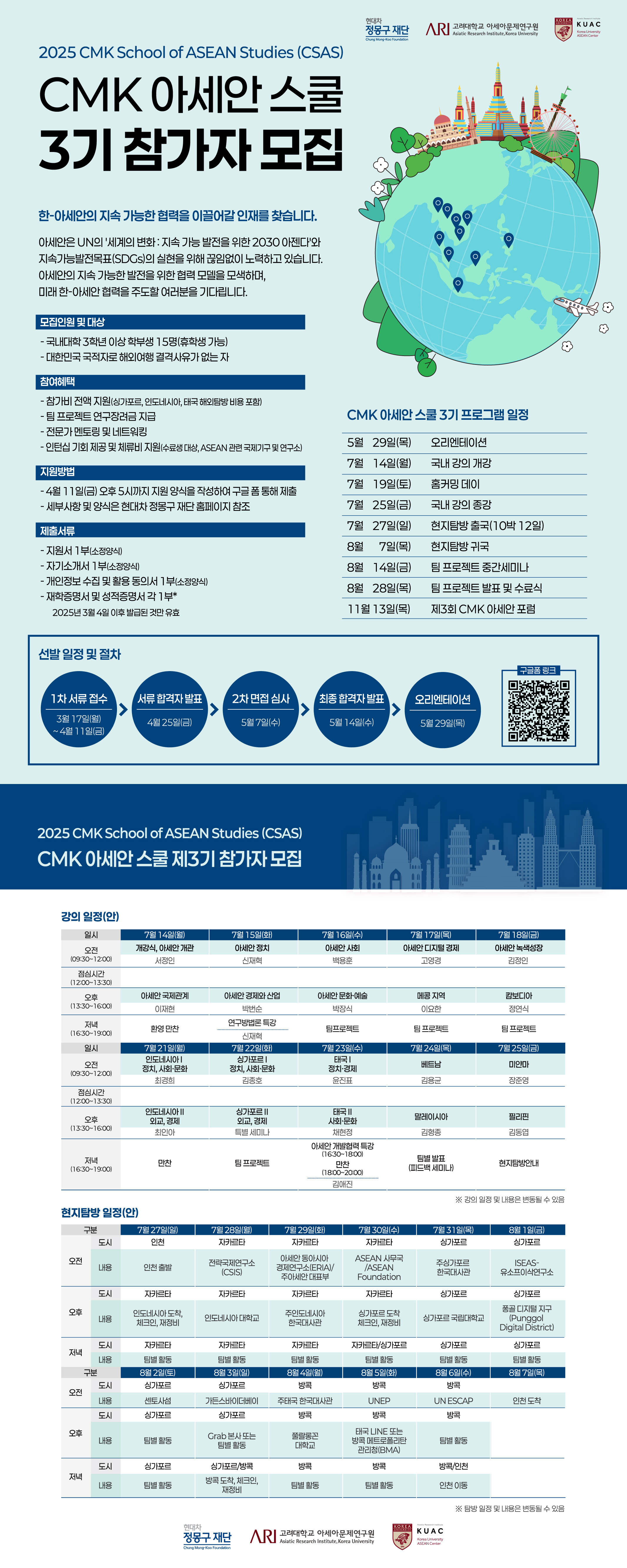 2025 CMK 아세안 스쿨 제3기 참가자 모집 공고