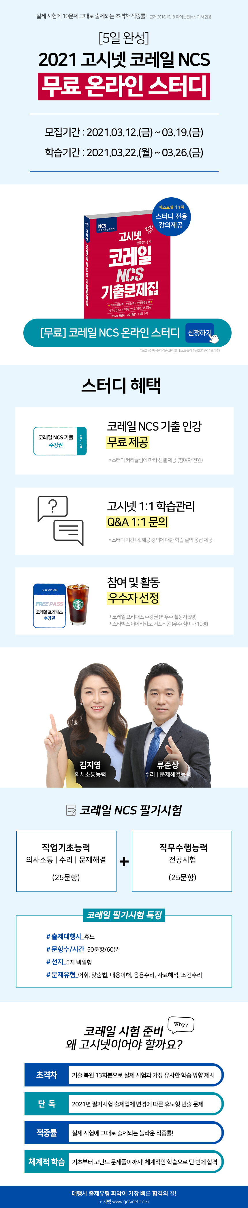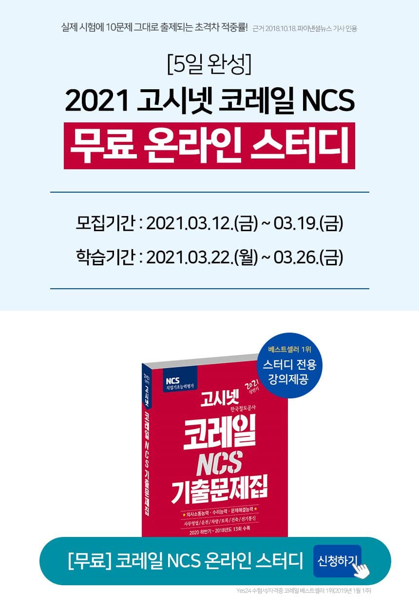 [5일 완성] 2021 고시넷 코레일 NCS 온라인 스터디 모집(~3.19)