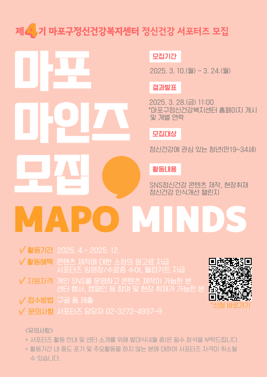1. 모집개요: 2025년 마포구 정신건강 서포터즈 마포마인즈 모집