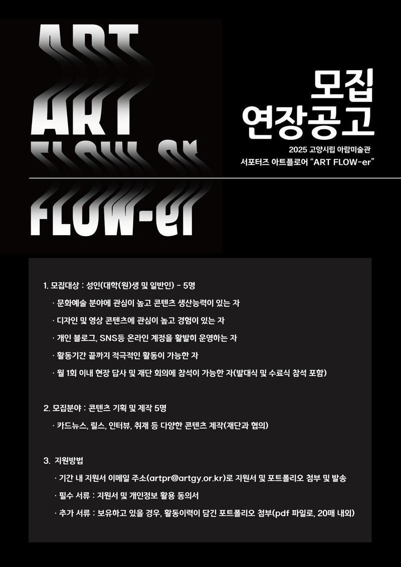 2025 고양문화재단 미술관 서포터즈 <Art flow-er> 모집 연장 공고❗