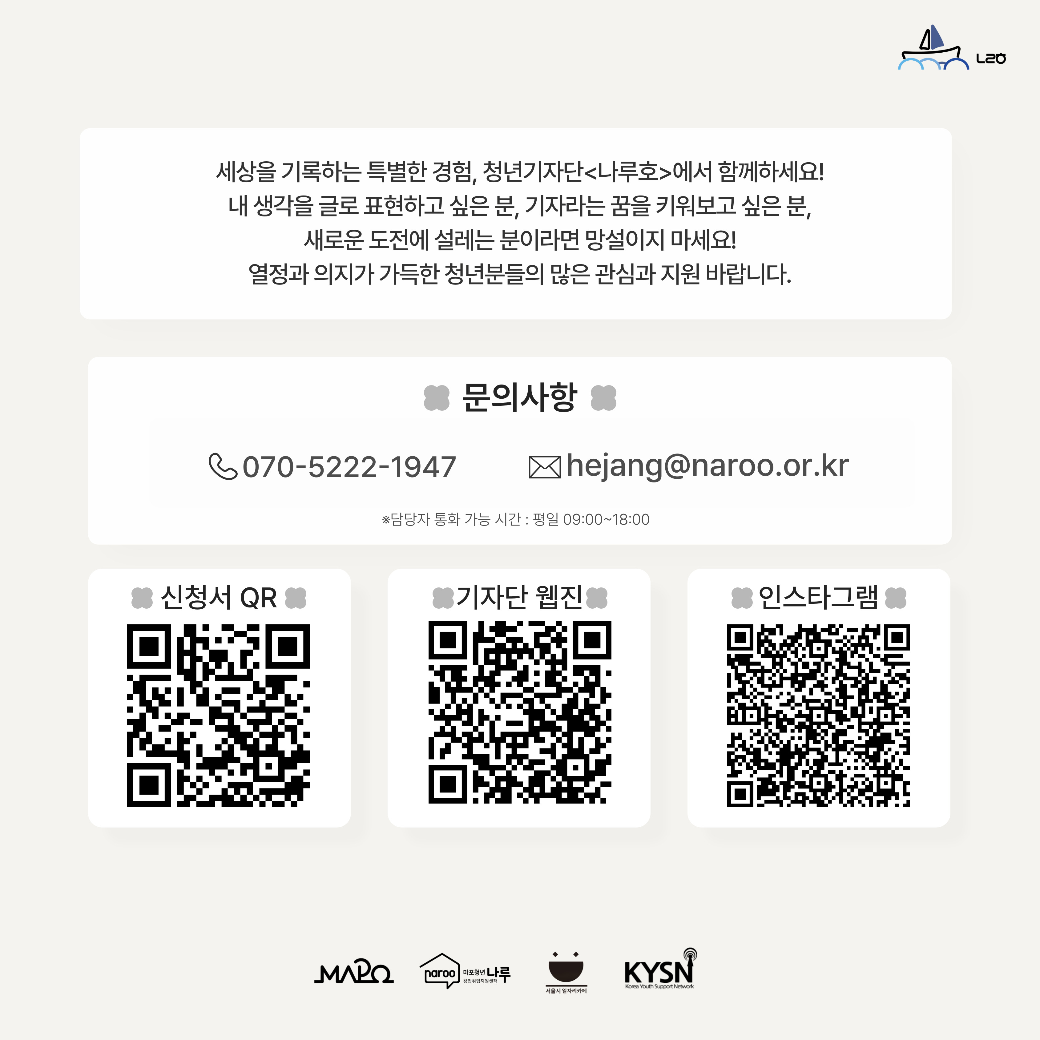 ■ 문의: 마포청년창업취업지원센터 나루 청년기자단 담당자