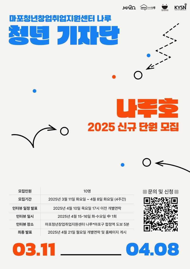 • 모집기간 : 2025년 3월 11일 (화) ~ 4월 8일 (화)
