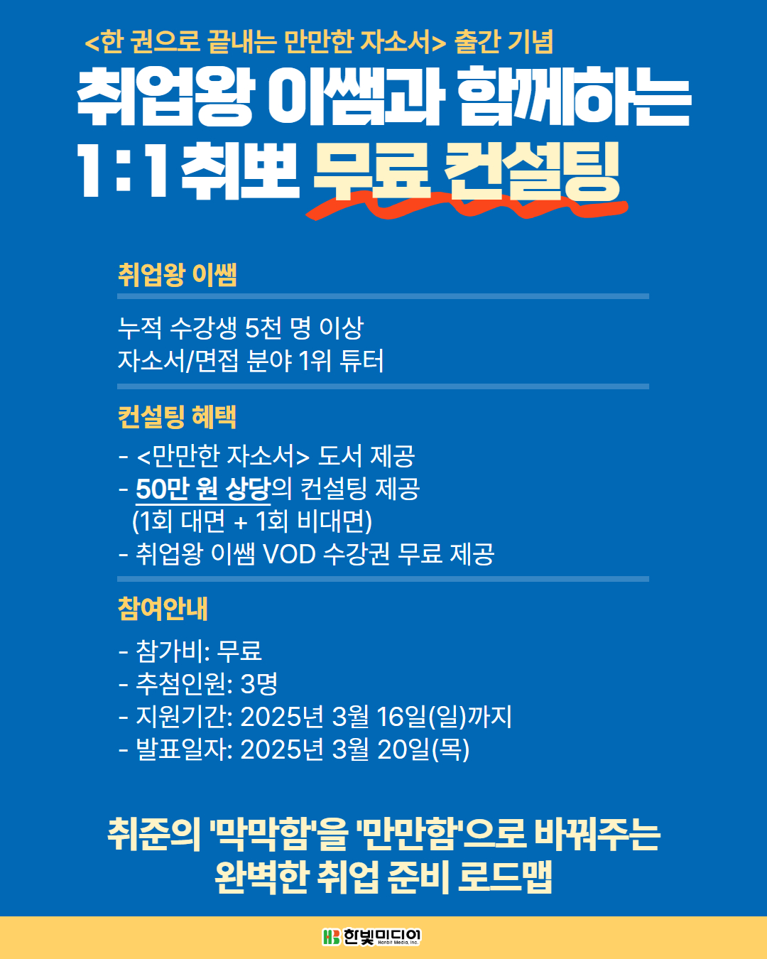 1:1 취뽀 컨설팅에 대한 궁금증은 koki@hanbit.co.kr로 문의주시면 됩니다.