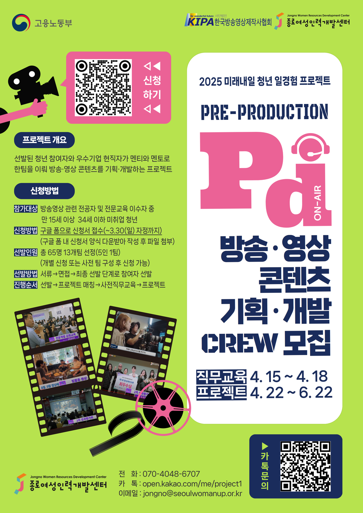 ● 신청대상: 방송·영상 관련 전공자 및 전문교육 이수자 중 만 15세 이상 34세 이하 미취업 청년