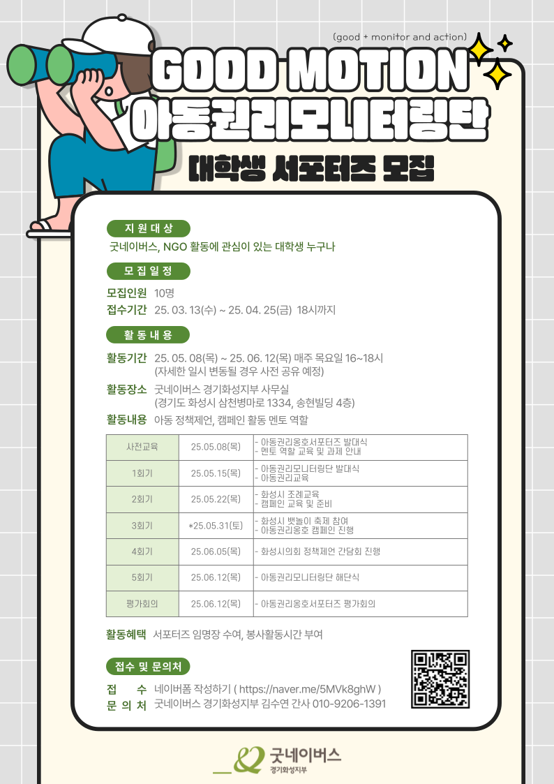 굿네이버스 경기화성지부에서 GOOD MOTION 아동권리옹호서포터즈를 모집합니다.