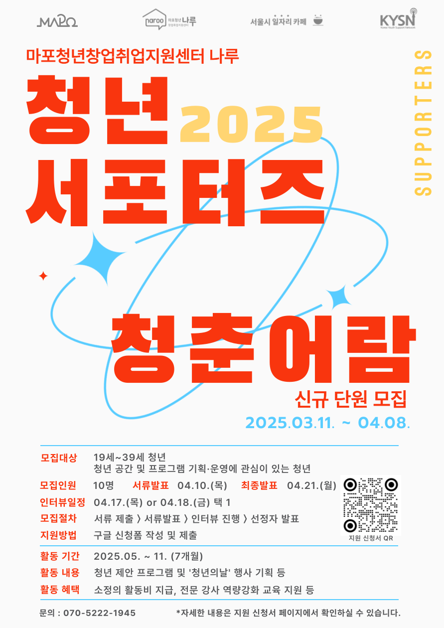 2025년 마포청년창업취업지원센터 청년 서포터즈 '청춘어람' 신규단원 모집