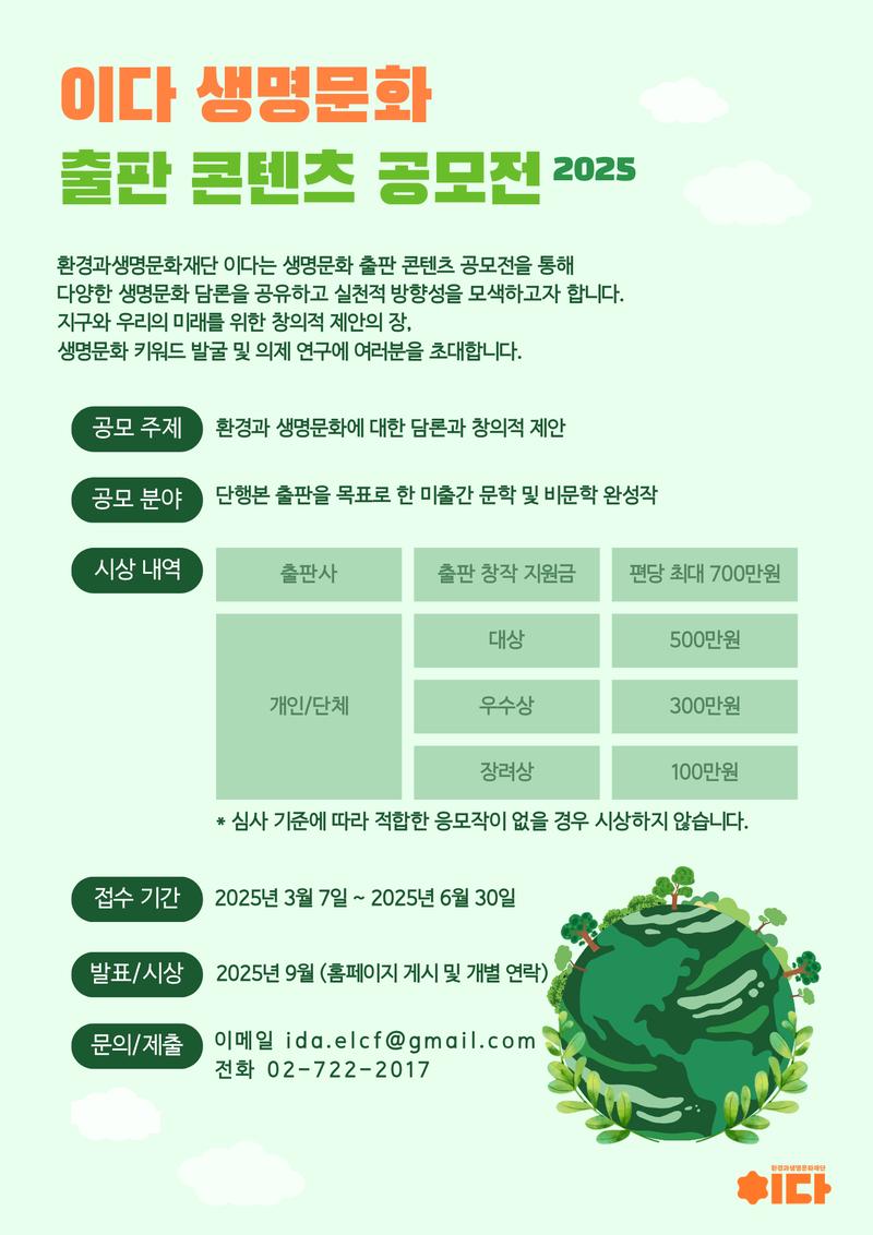 - 공모 주제 : 환경과 생명문화에 대한 담론과 창의적 제안