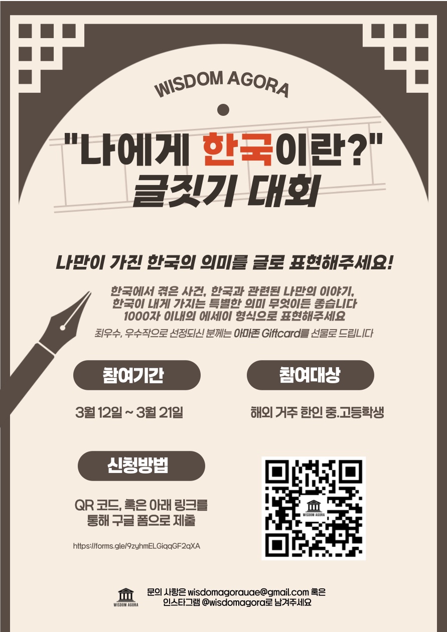 📢 위즈덤 아고라 제1회 <나에게 한국이란?> 글짓기 대회