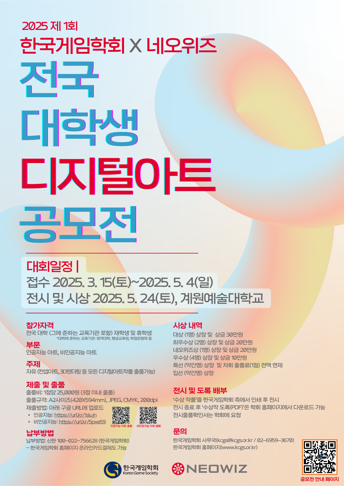 행사명: 「2025 제1회 한국게임학회 X 네오위즈 전국 대학생 디지털아트 공모전」