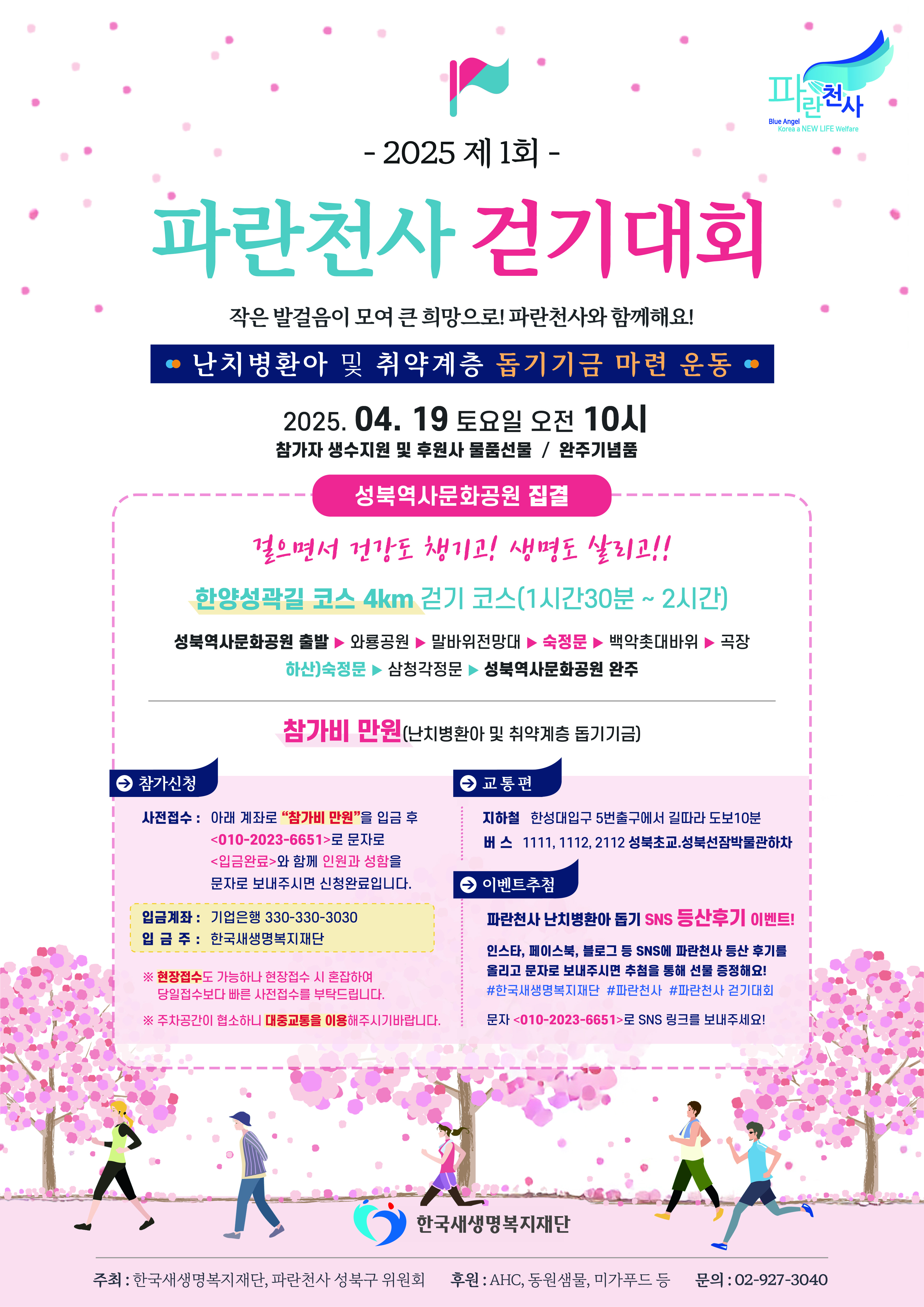 2025 난치병환아 치료비 지원비 및 취약계층 돕기 기금마련 걷기행사