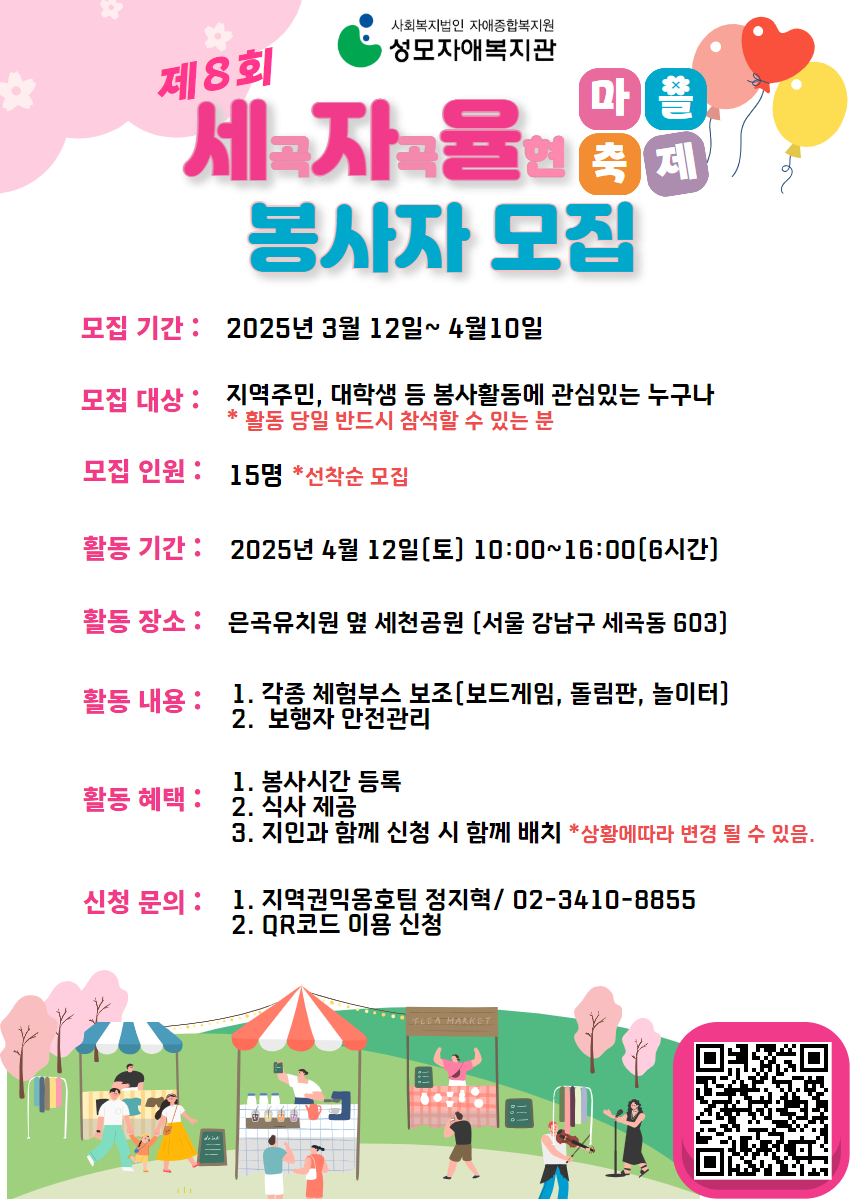 세자율 축제의 자원봉사자를 모집합니다.