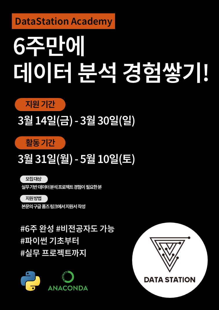 데이터스테이션과 함께하는 실무 기반 데이터 분석 프로젝트 모집!